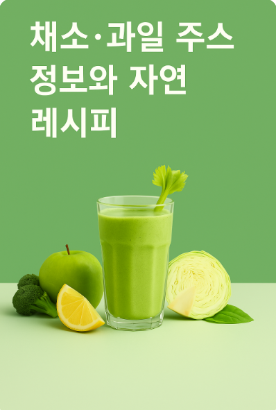 채소·과일 주스는 일상에서 쉽게 구할 수 있는 재료를 갈아 만든 음료로, 여러 영양소를 한 번에 섭취할 수 있다는 점에서 많은 분들이 선호합니다. 특히 양배추, 사과, 당근 등은 식이섬유와 항산화 성분이 풍부해 균형 잡힌 식단의 일부로 활용되곤 합니다. 다만 ’몸속 독소 배출’과 같은 표현은 과학적으로 명확하게 규정된 개념이 아니므로, 해석에 따라 차이가 있을 수 있다는 점을 참고해 주세요.